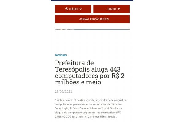 Prefeitura de Teresópolis aluga 443 computadores por R$ 2 milhões e meio