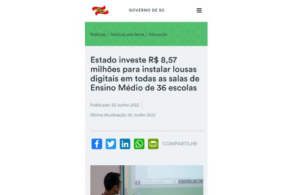 Governo do Estado investe R$ 8,57 milhões para instalar lousas digitais em todas as salas de Ensino Médio de 36 escolas