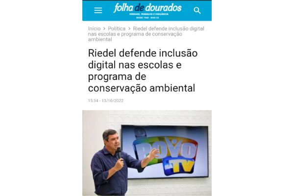 Riedel defende inclusão digital nas escolas e ampliação de programa que busca a conservação do meio ambiente