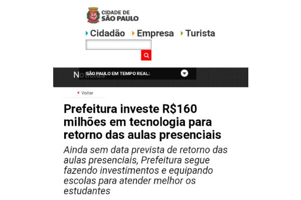 Prefeitura investe R$160 milhões em tecnologia para retorno das aulas presenciais
