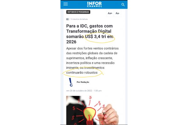 Para a IDC, gastos com Transformação Digital somarão US$ 3,4 tri em 2026